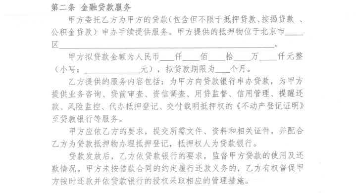 厚泽金融抵押贷款服务合同。合同截图